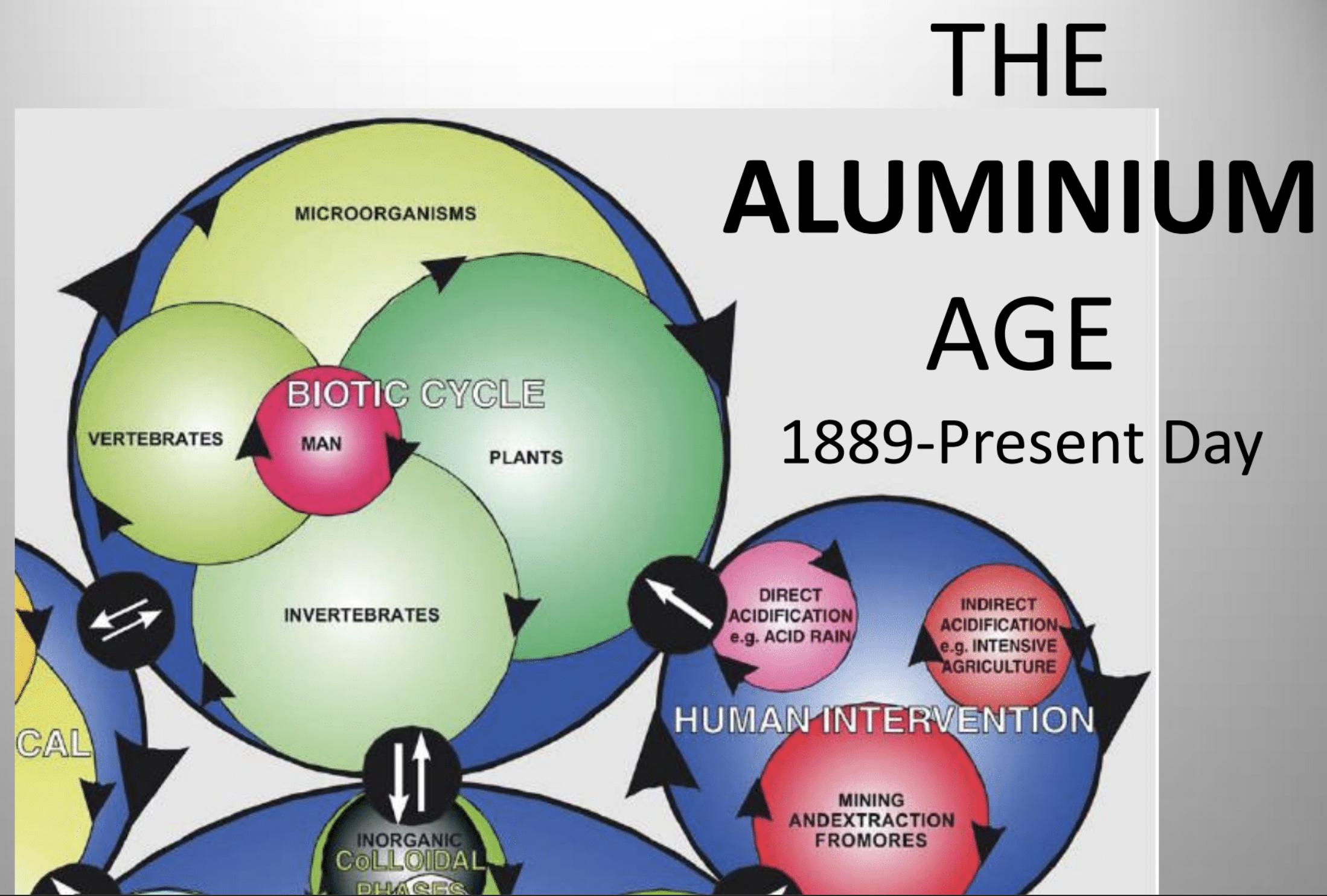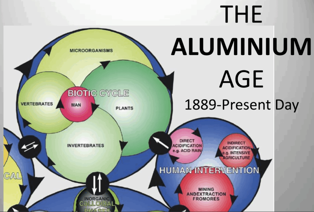 But why do we all need to know a little bit more about aluminum? Do we need a self-help guide for living in what Exley has coined “The Aluminum Age”? What is it about aluminum that makes it different? What about iron, copper, or any of the so-called “heavy metals,” like mercury, cadmium, or lead? Why must we pay particular attention to aluminum? Because its bio-geochemistry, its natural history, raises two red flags immediately and simultaneously.